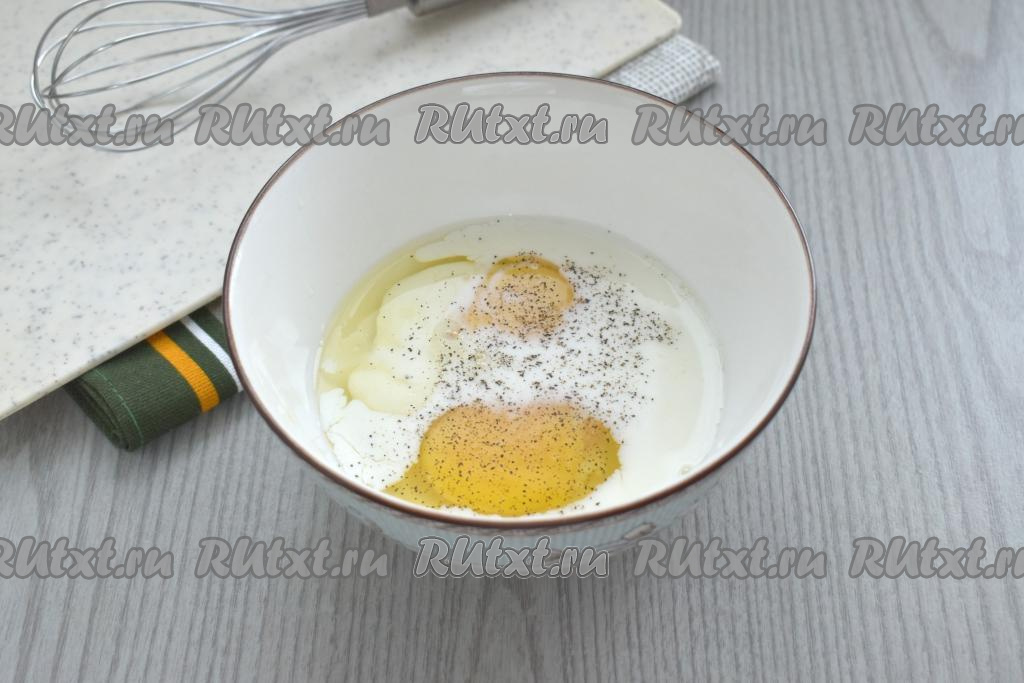 Вливаем к ним молоко, добавляем по вкусу соль и чёрный молотый перец.