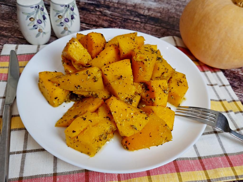 Я часто готовлю тыкву по разным рецептам. В этот раз решила запечь в духовке кусочки тыквы с сушёным базиликом и чесноком. Вроде бы всё просто, продукты доступные, а блюдо каждый раз приятно радует своим вкусом и ароматом. Кусочки тыквы получаются нежными, сочными, они просто тают во рту. К столу эту ароматную тыкву можно подать и в качестве гарнира к мясу, птице, и в качестве основного блюда в постные дни. Уверена, попробовав тыкву, запечённую по этому простому рецепту, вы не разочаруетесь!
