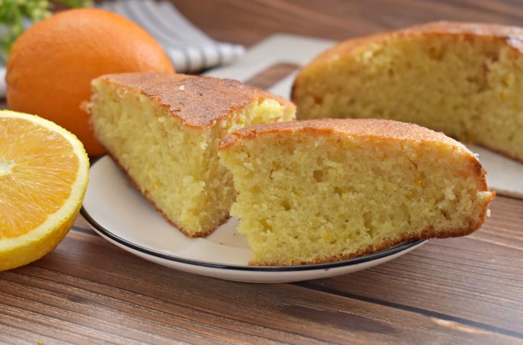 Даём выпечке немного остыть в форме, затем перекладываем её на решётку, оставляем остывать. Остывший апельсиновый пирог, приготовленный на кефире, нарезаем на части и подаём вкусную, ароматную, в меру плотную выпечку к столу.