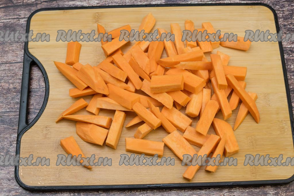 Нарезать батат на примерно одинаковые брусочки.