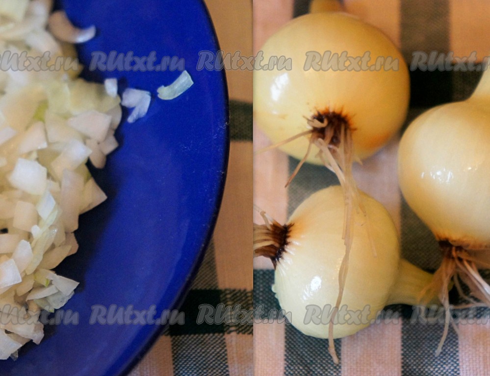 Лук мелко нарезать, добавить в суп. При желании можно слегка обжарить лук на растительном масле до прозрачности.