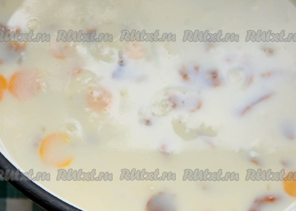 Добавить молоко, посолить суп, довести до кипения молока и выключить огонь.