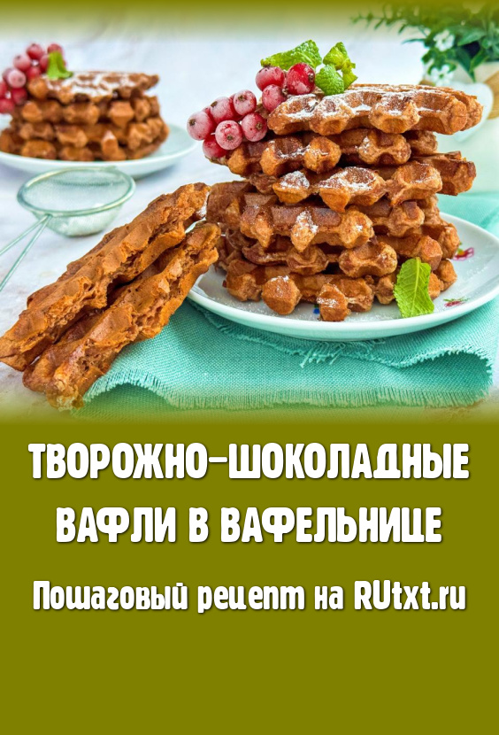 Закрыть створки вафельницы, выпекать творожно-шоколадную вафлю до готовности. Продолжительности выпечки зависит от свойств вашей вафельницы. Готовую вафлю переложить на тарелку. Периодически перемешивая тесто, постепенно испечь все вафли.