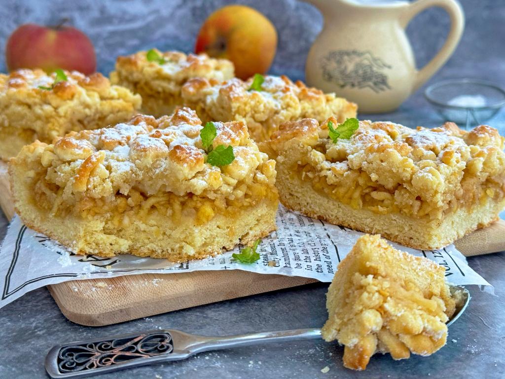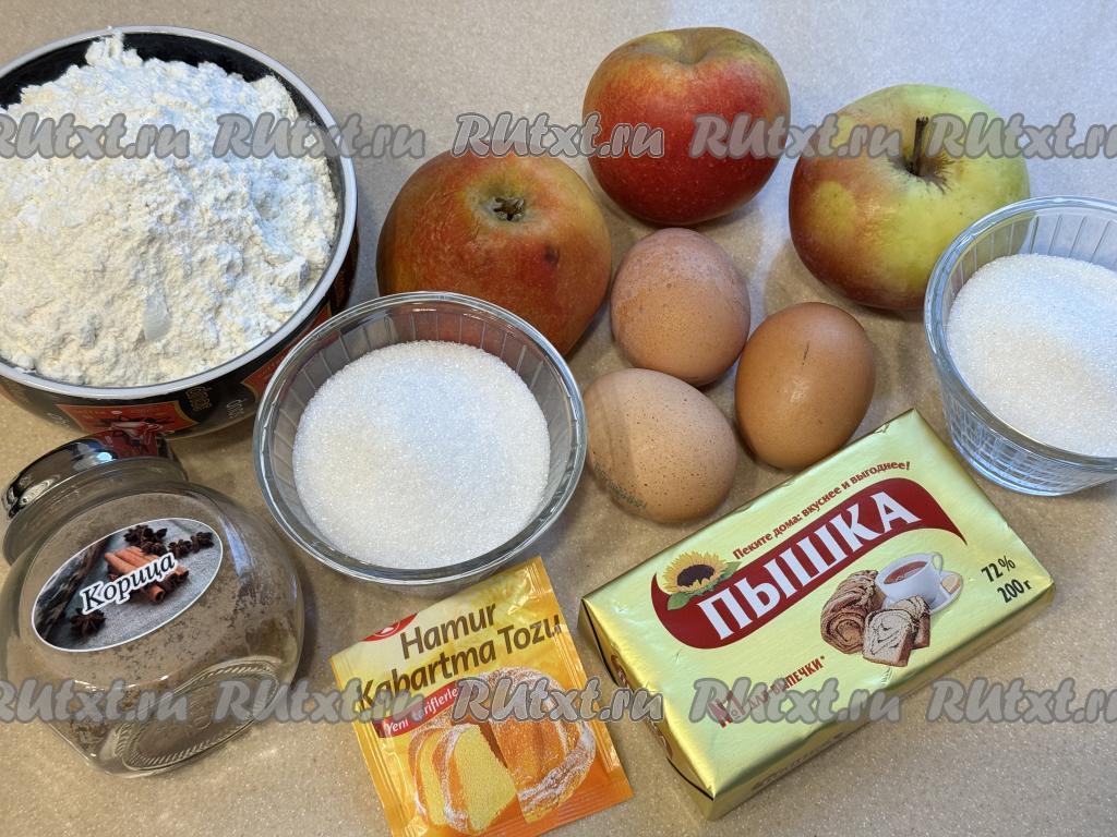 Наивкуснейшую шарлотку из нежнейшего песочного теста с сочной начинкой из яблок подать к чаю, кофе, молоку.