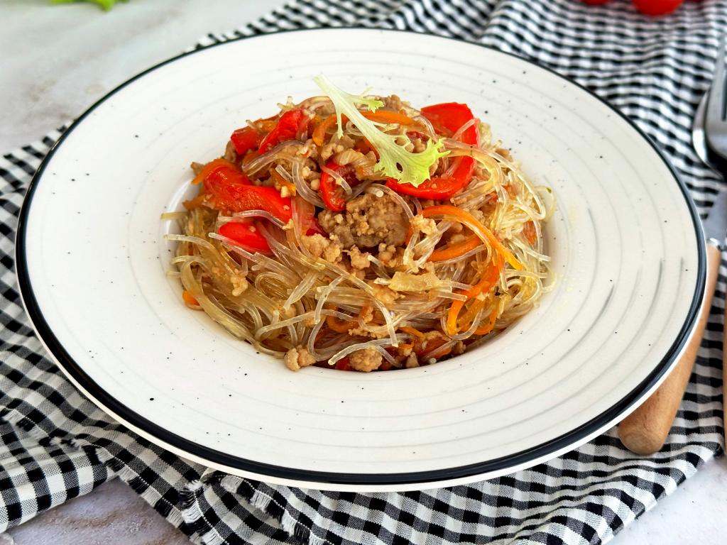 Фунчоза с фаршем и овощами