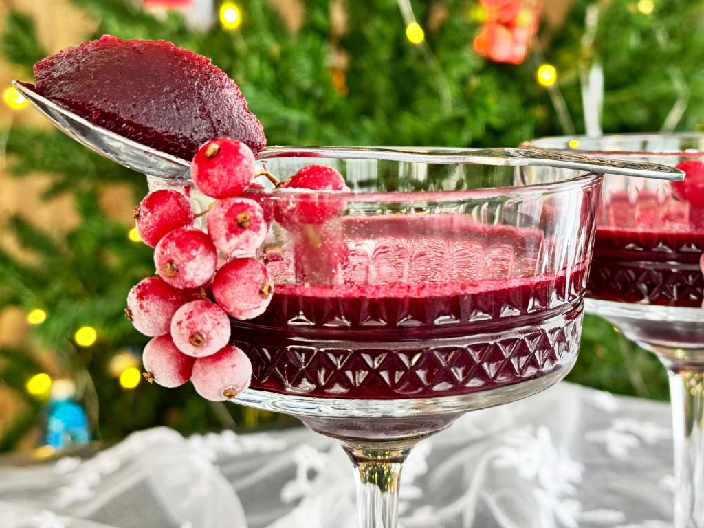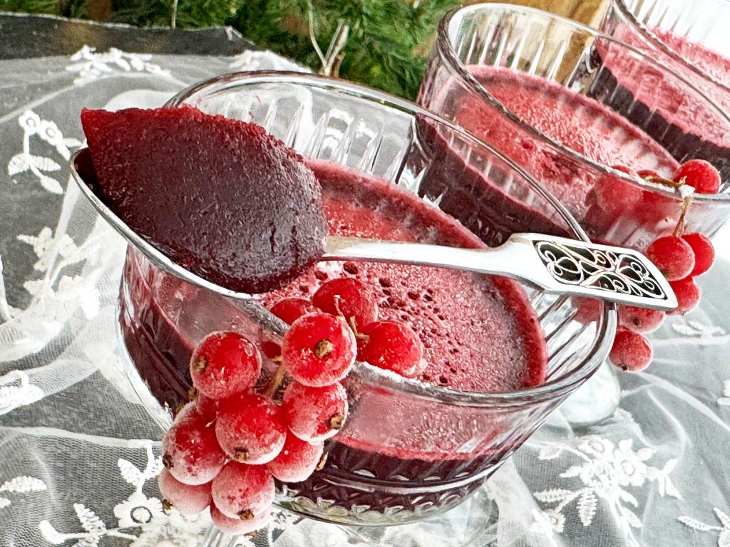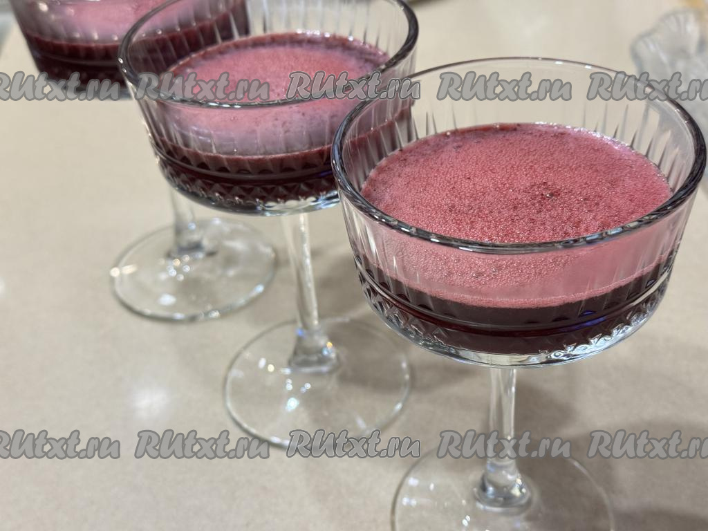 Однородную ягодно-желатиновую массу разлить по фужерам (я разлила по 3 фужерам), дать остыть до комнатной температуры и поставить ягодное желе в холодильник до полного застывания (я обычно ставлю на ночь).
