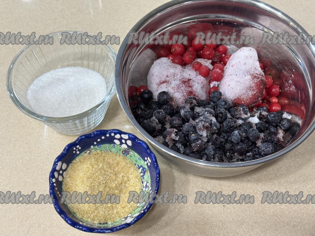 Подготовить продукты. Для этого десерта можно взять замороженные ягоды как одного вида, так и смесь ягод (у меня - замороженные черника, красная смородина и клубника).