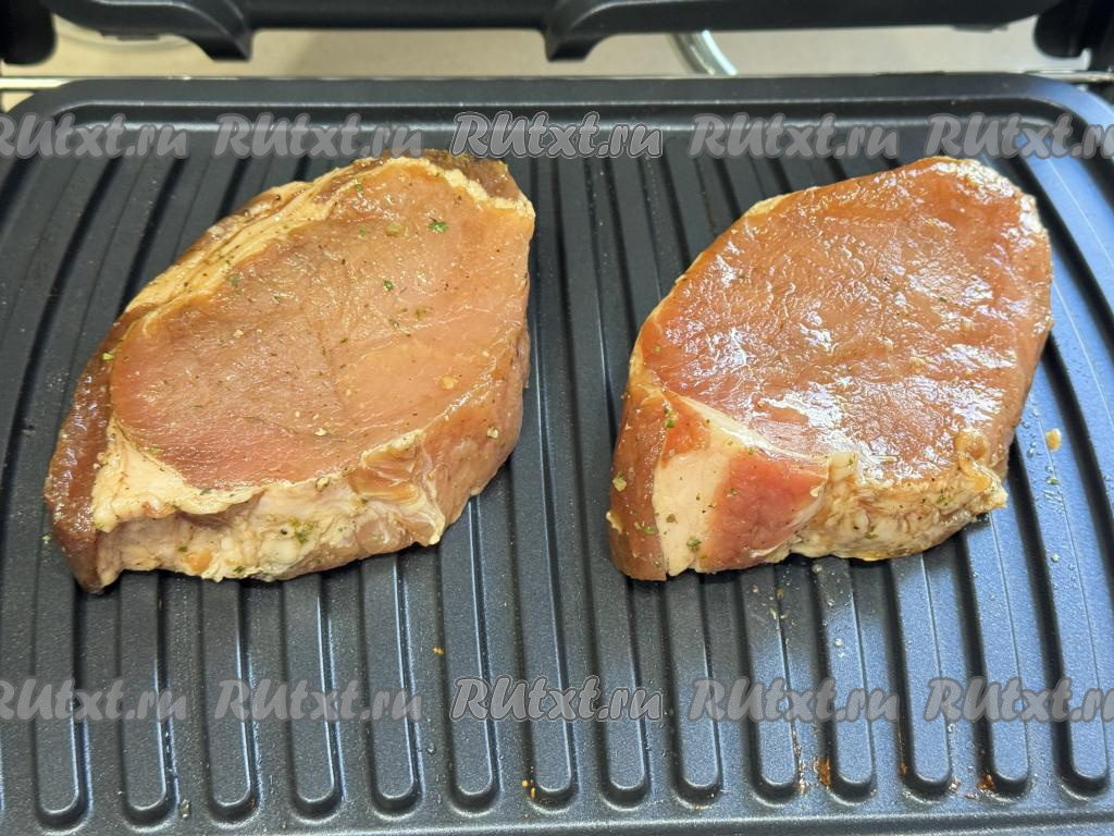 Закрыть створки электрогриля, готовить стейки из свинины 10-12 минут.