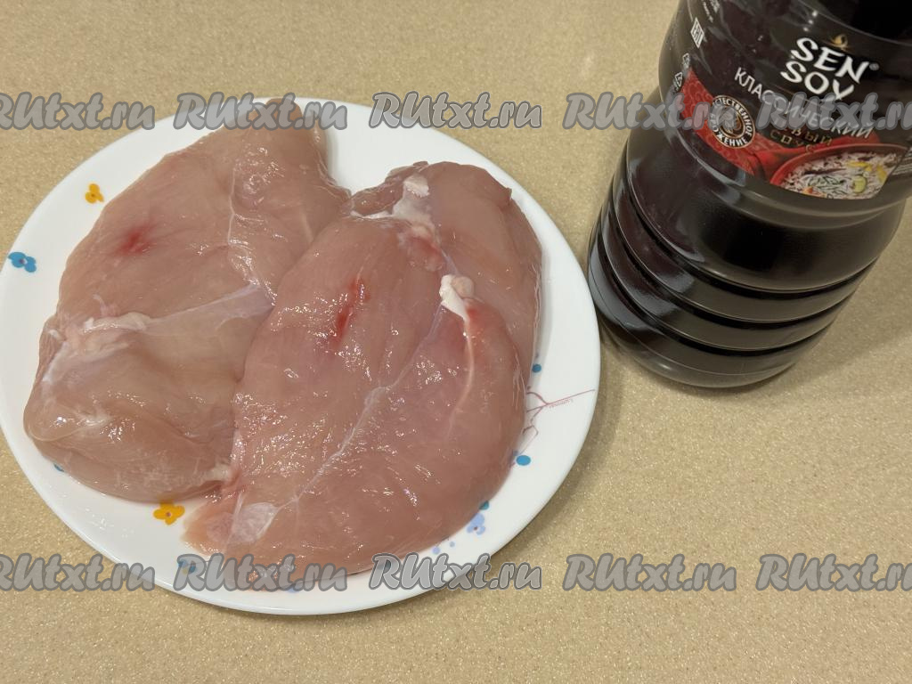Соевый соус достаточно солёный, поэтому дополнительно солить филе куриной грудки нет необходимости.