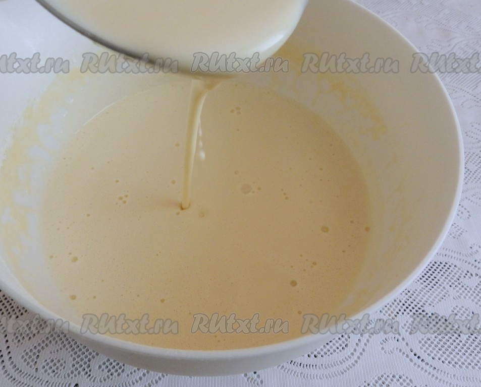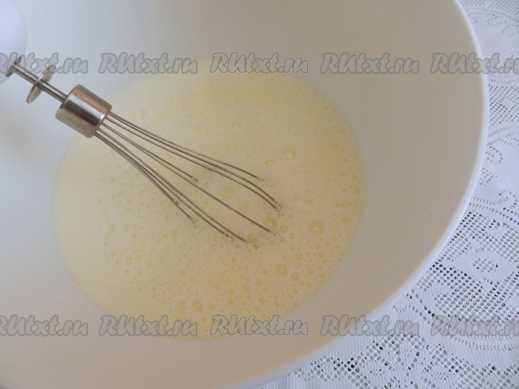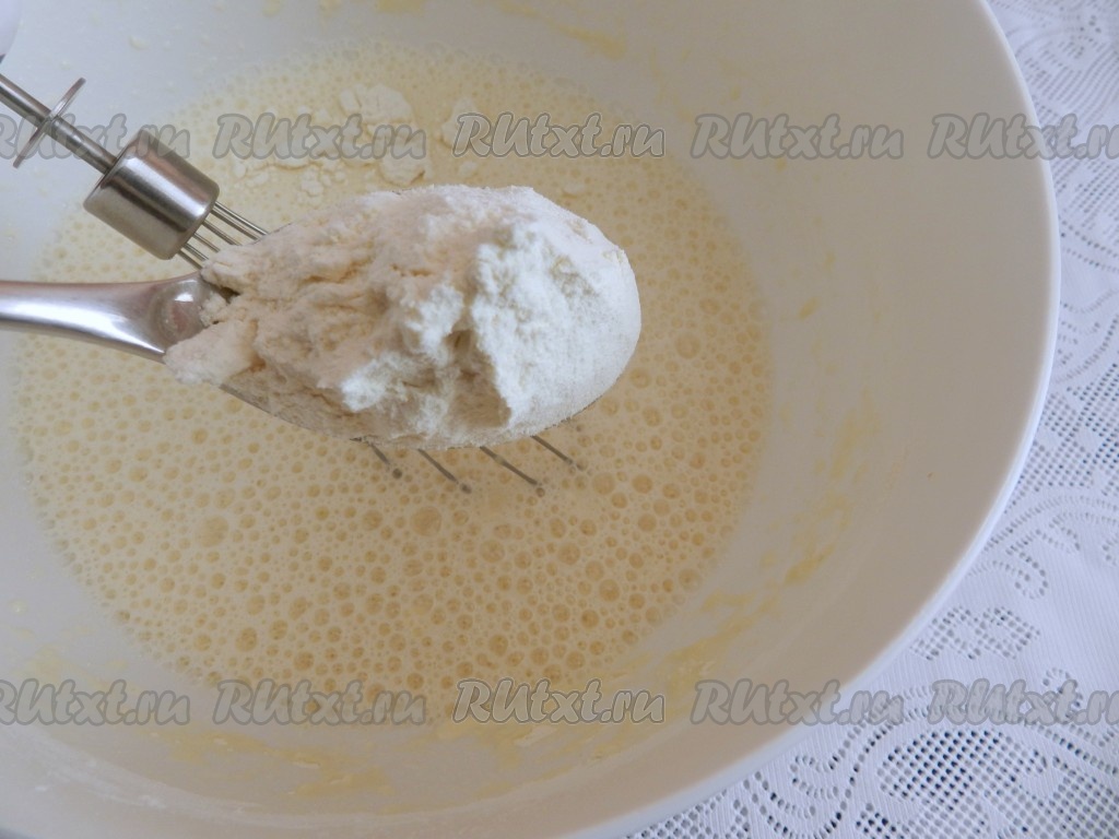 Начать добавлять по 1 столовой ложке муки, каждый раз тщательно вмешивая её венчиком в тесто.