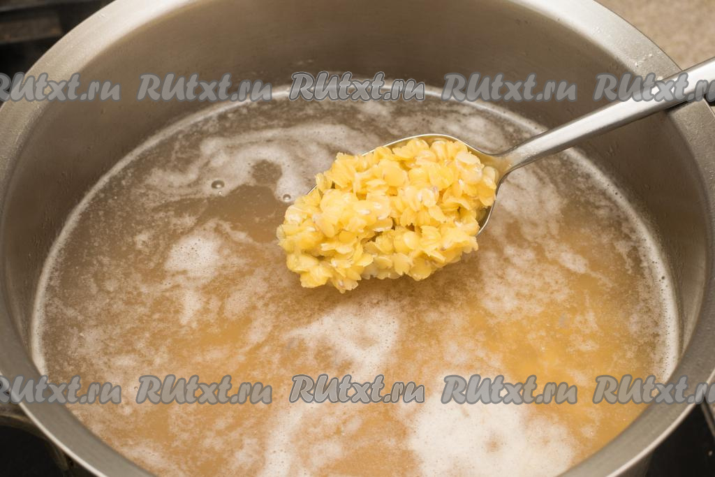 Я готовила суп с красной чечевицей, уже по прошествии 20 минут с момента закипания бульона она хорошо разварилась. Если вы будете варить суп, например, с зелёной чечевицей, то её варить придётся немного дольше (точное время варки смотрите на упаковке чечевицы, которую вы используете).