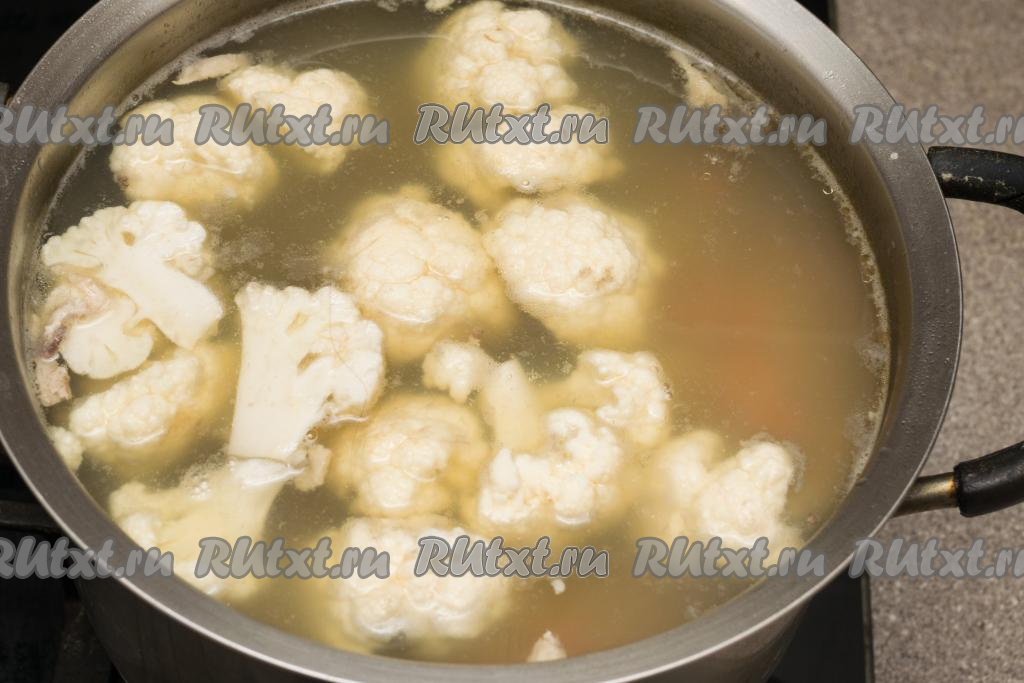 После того как суп с чечевицей, картошкой и морковкой с момента закипания проварится 15 минут, добавить в кастрюлю подготовленную цветную капусту.