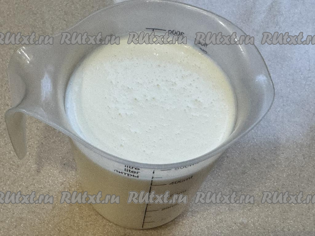 Для приготовления сливочного соуса нужно в достаточно глубокой ёмкости соединить сливки и 250 миллилитров воды, добавить соль по вкусу, перемешать.