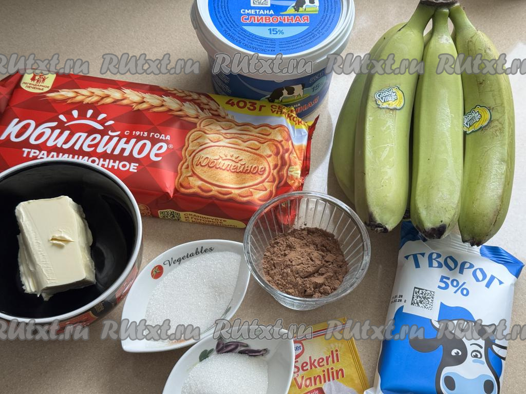 Если нет измельчителя, можно сложить печенье в пакет, завязать его и с помощью скалки, катая её поверх пакета, превратить печенье в крошку. Банан можно измельчить в пюре с помощью погружного блендера.
