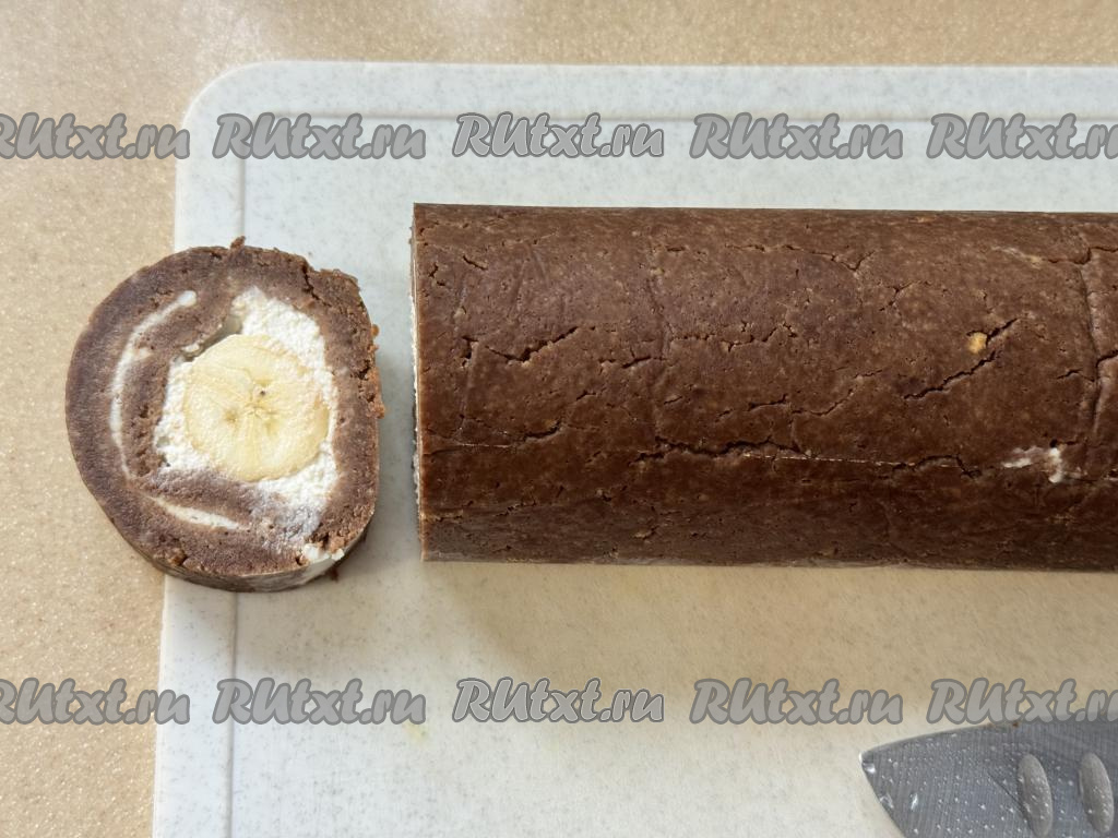 На следующий день рулет, приготовленный из печенья и банана без выпечки, освободить от фольги.