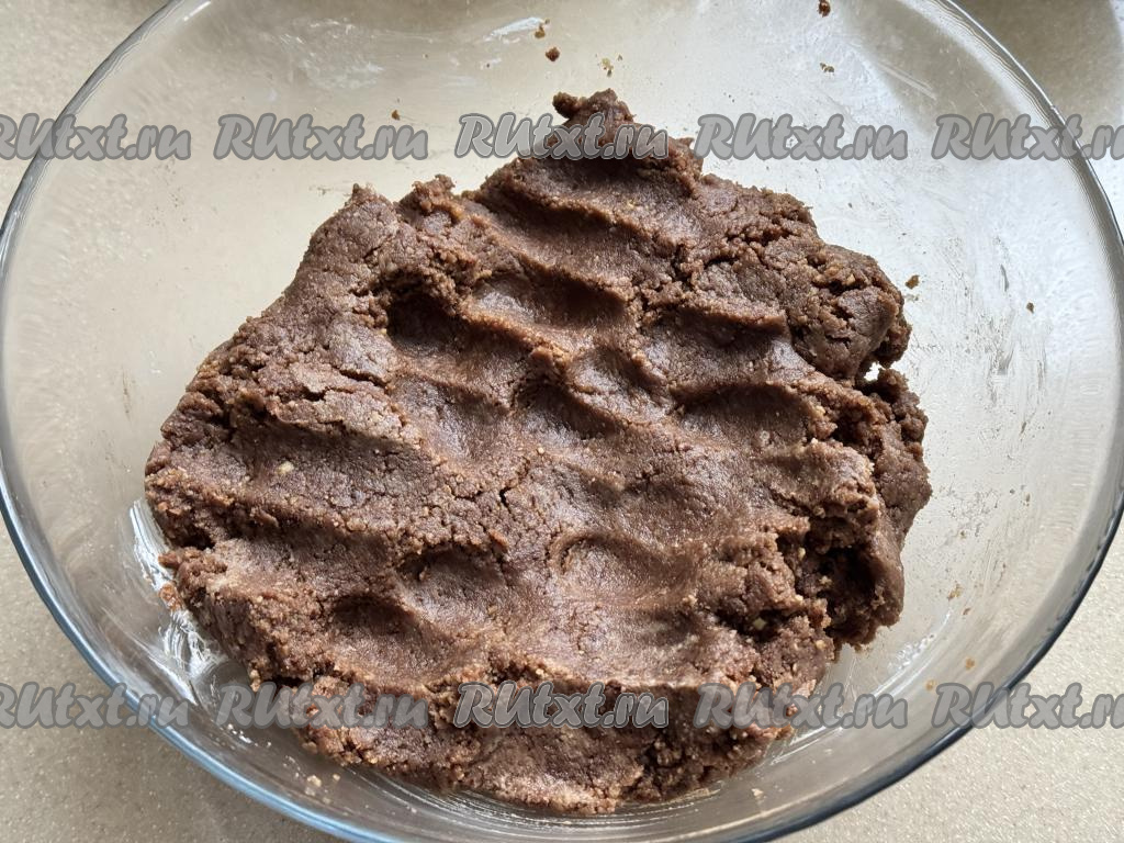 Перемешать песочно-банановую массу руками, она должна получиться пластичной и однородной.