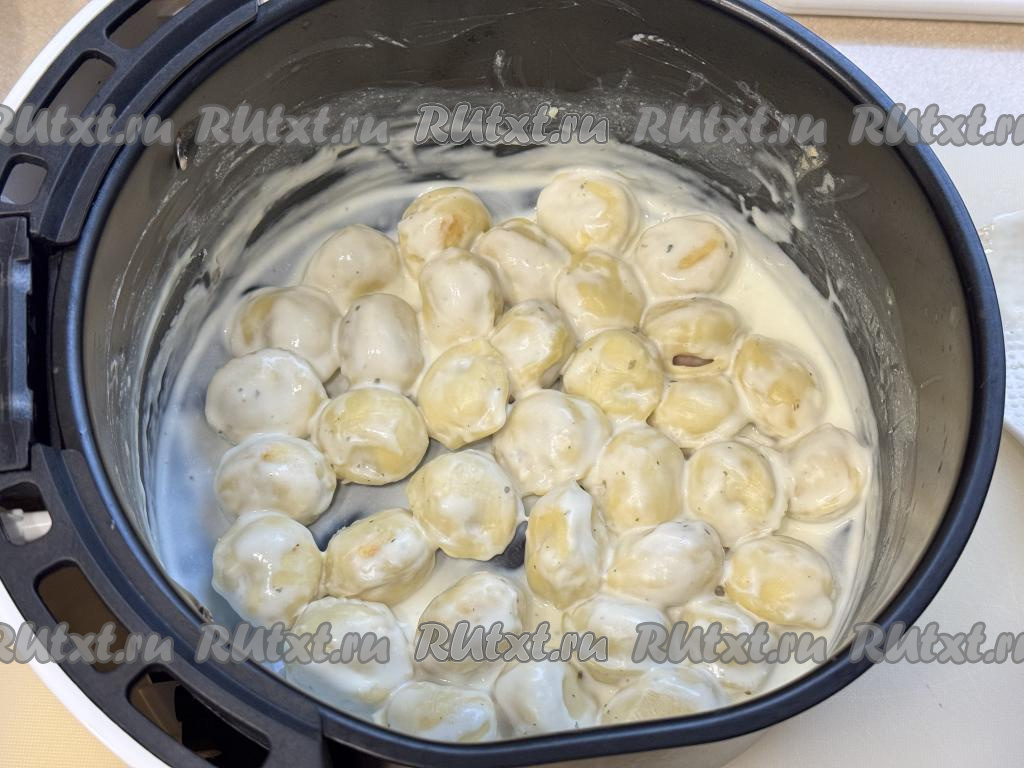 Для приготовления пельменей в сметане в аэрогриле потребуется:
