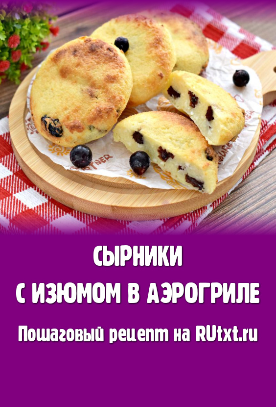 Сырники жарят чаще всего на сковороде. А в этот раз я предлагаю запечь сырники с изюмом в аэрогриле. Готовятся они по этому рецепту достаточно просто. Тесто замешивается из творога, яйца и манки без добавления муки. Сырники получаются нежными, а изюм делает их особенно вкусными и аппетитными. Благодаря аэрогрилю они готовятся практически без добавления растительного масла. При подаче сырники можно дополнить сметаной, мёдом или вареньем.