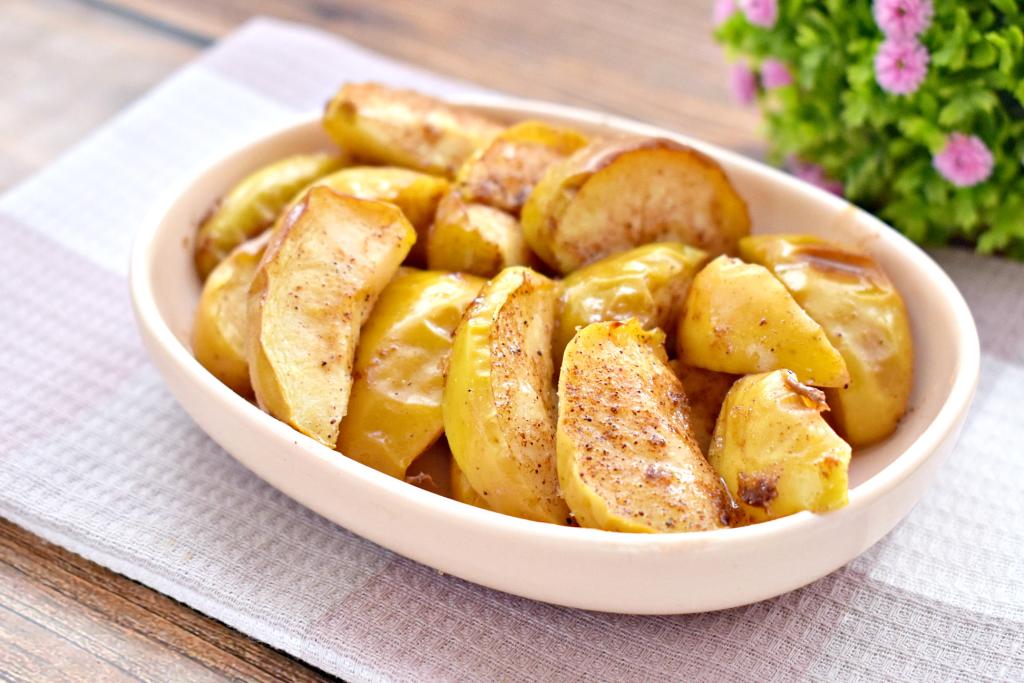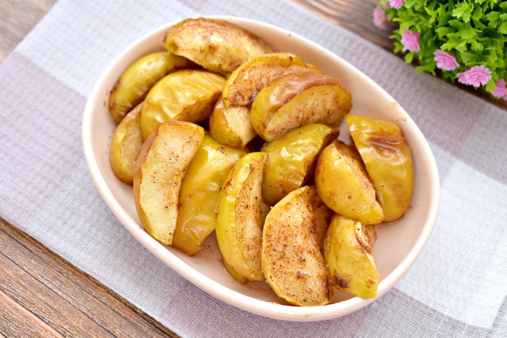 Яблоки чаще всего запекают в духовке или в микроволновке. А в этот раз я предлагаю нарезать яблоки на дольки и запечь их в аэрогриле. В результате получается вкусное, аппетитное, ароматное блюдо, которое можно подать и в качестве основного десерта, и в качестве дополнения к каше, творогу. Перед запеканием я посыпала яблоки смесью сахара и корицы, а сверху выложила кусочки сливочного масла. Благодаря этому вкус фруктового десерта стал более насыщенным. Запеките дольки яблок в аэрогриле и у вас на столе будет блюдо, которое понравится всей семье!