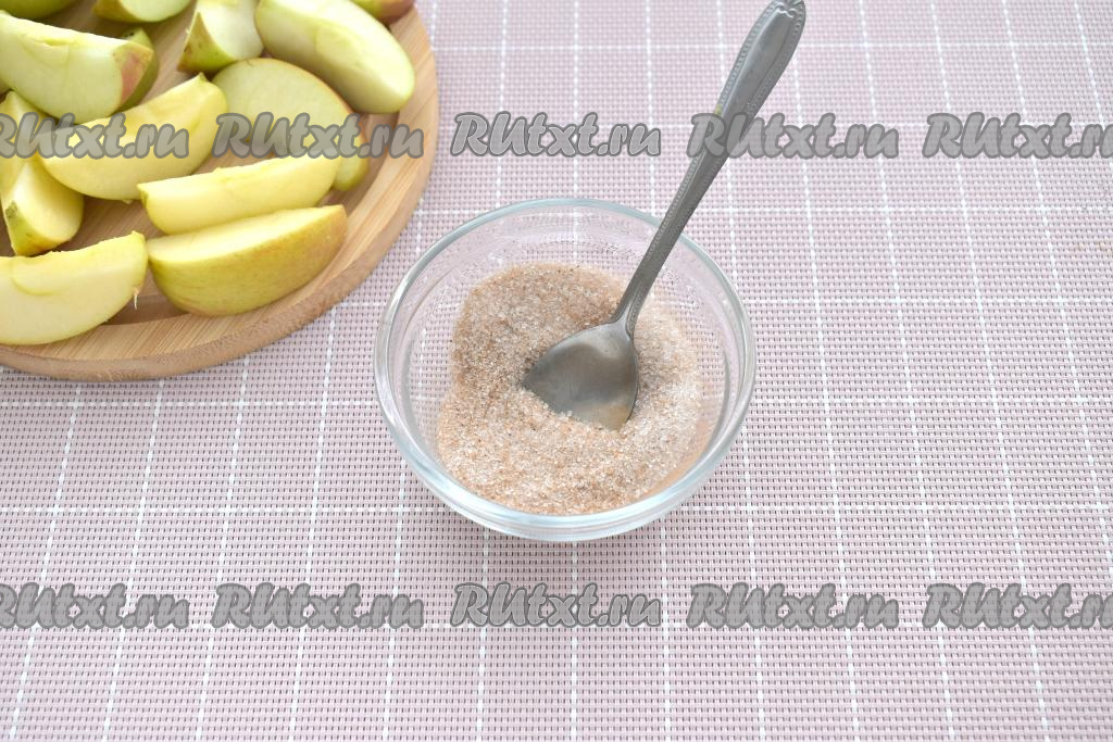 Сверху дольки яблок посыпаем смесью сахара и корицы.