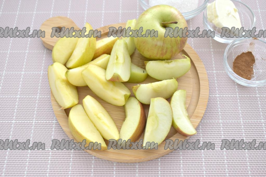 Нарезаем яблоки на дольки среднего размера, удаляя семенную коробку с косточками.