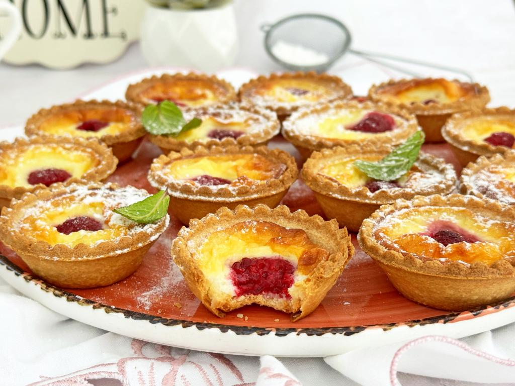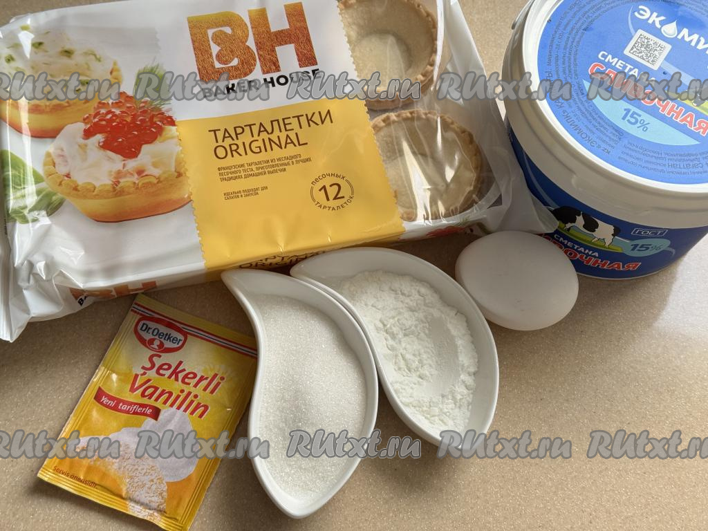 Запекать сметанники в тарталетках в разогретой до 180 градусов духовке минут 20-25. Сметанная начинка должна схватиться сверху и не иметь жидких участков на поверхности.
