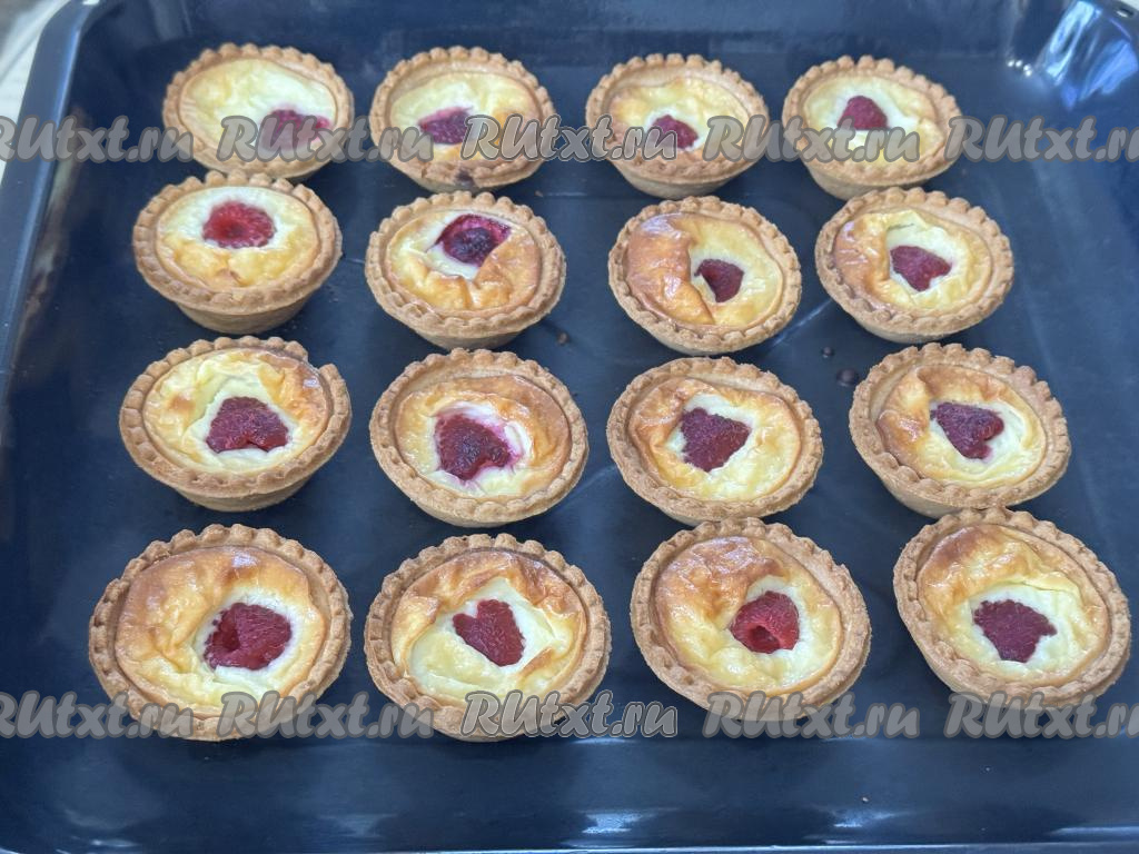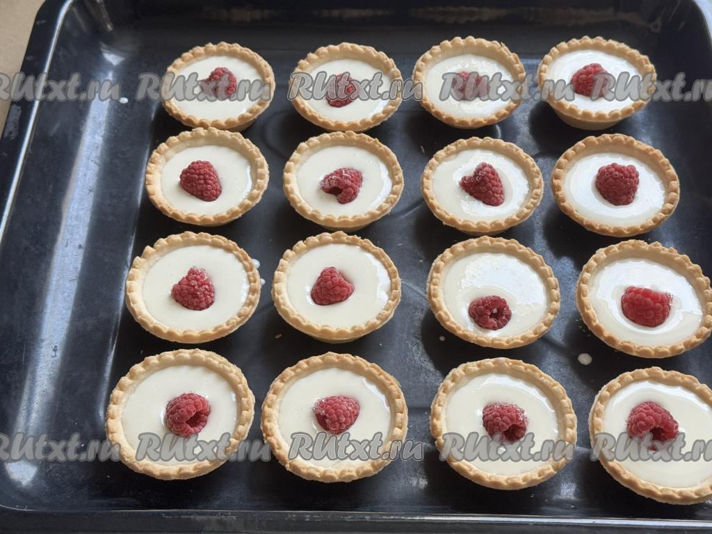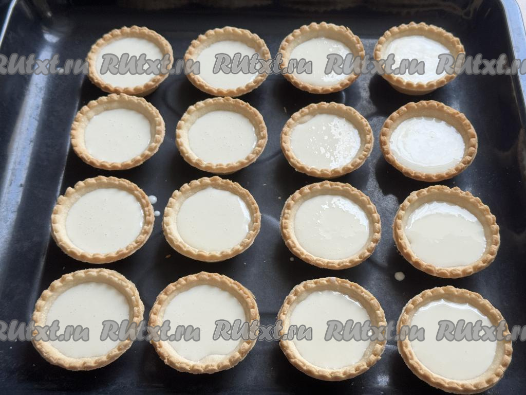 Разложить сметанную массу по тарталеткам, заполняя примерно на 2/3 объёма.
