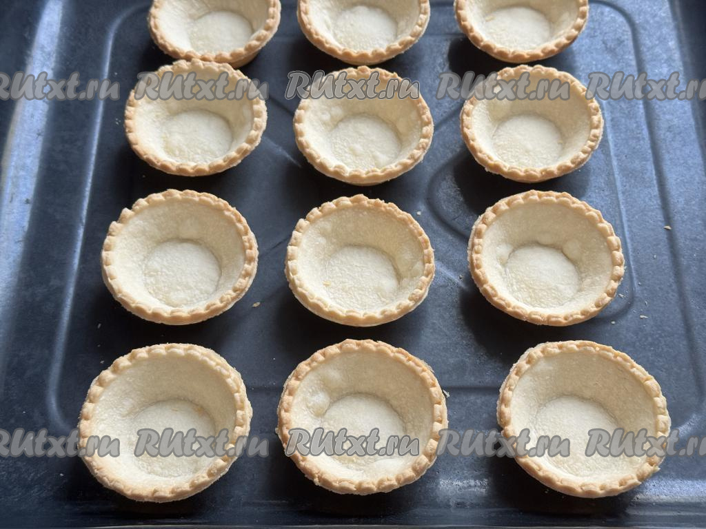 Песочные тарталетки поставить на противень.