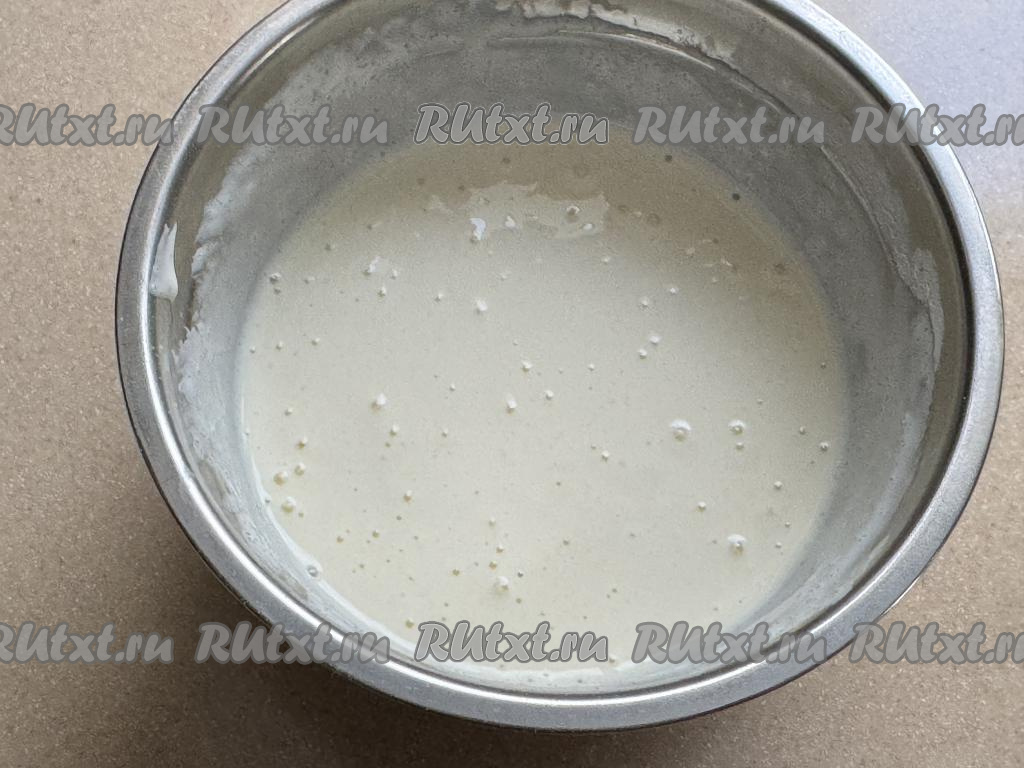 Перемешать сметанную массу венчиком до однородности.