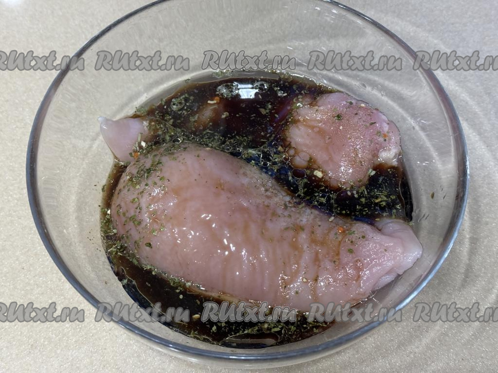 Оставить филе мариноваться на 30 минут. За это время можно 1-2 раза перемешать мясо, чтобы оно равномерно пропиталось соевым соусом.