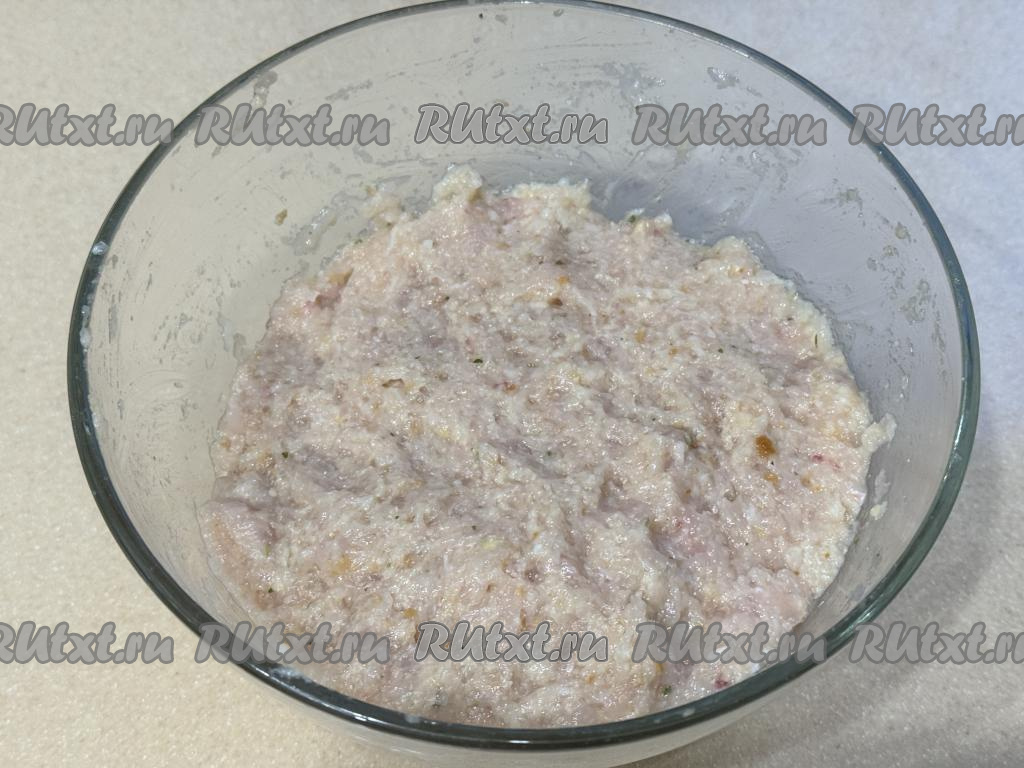 Тщательно перемешать куриный фарш и отправить его в холодильник на 30-40 минут.