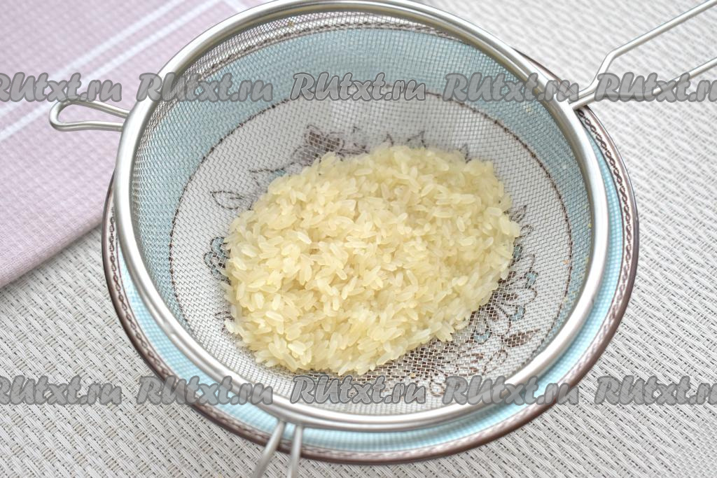 Пока варится картофель, рис выкладываем в сито. Хорошо промываем рис под проточной водой, даём лишней воде стечь. После того как картошка с момента закипания проварится 5 минут, добавляем в суп из утки подготовленный рис, даём закипеть, уменьшаем огонь, варим 15 минут.
