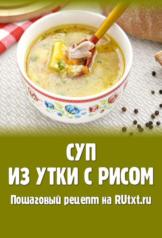 В моей семье любят супы, сваренные на насыщенных мясных бульонах. Поэтому я решила приготовить суп из утки с добавлением риса. Суп получился сытным, ароматным, насыщенным и вкусным. Это первое блюдо внесло приятное разнообразие в наше семейное меню, поэтому и вам советую его приготовить!