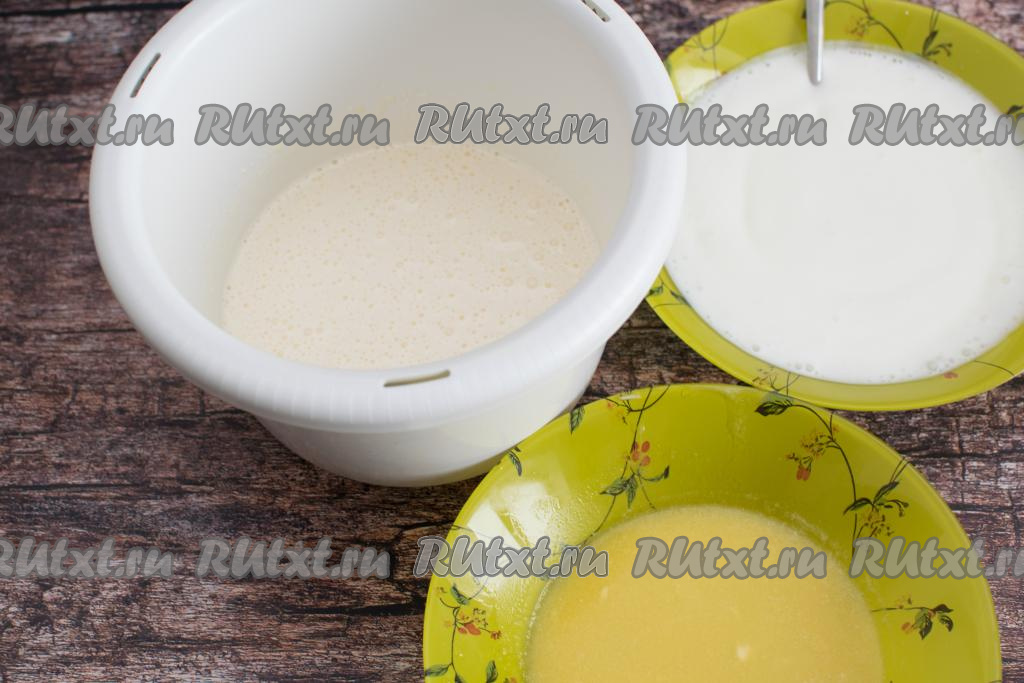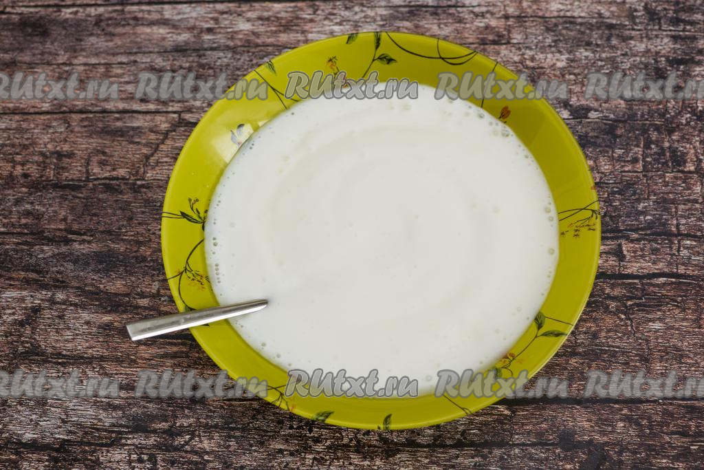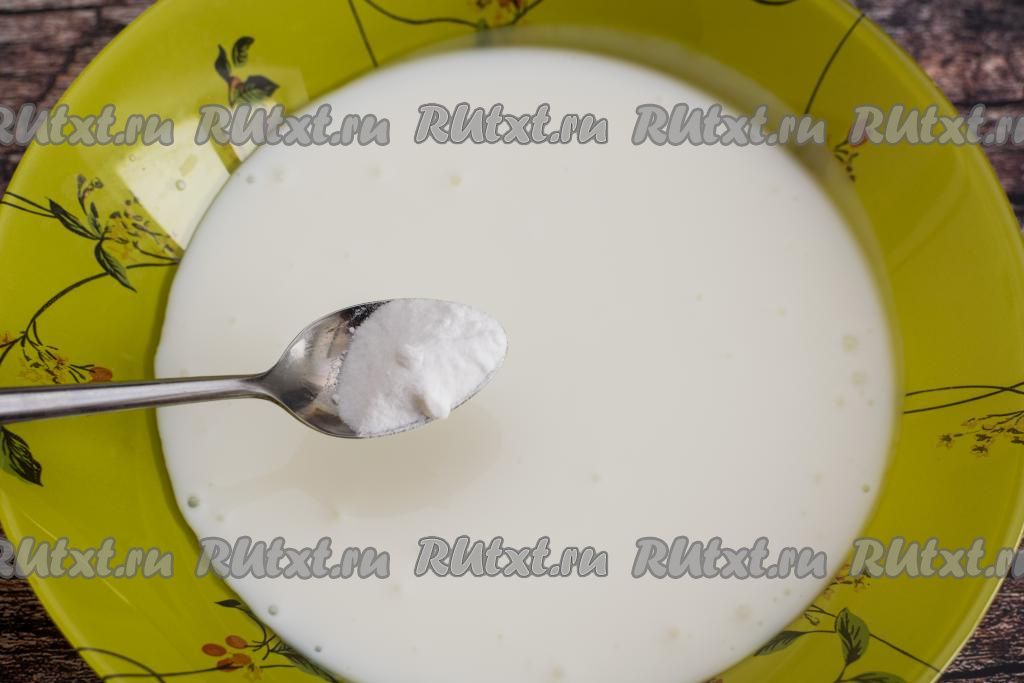 Дать смеси кефира и соды постоять 5-7 минут. За это время сода погасится в кислой среде кефира, поэтому кефир увеличится в объёме, на его поверхности появится большое количество пузырьков..