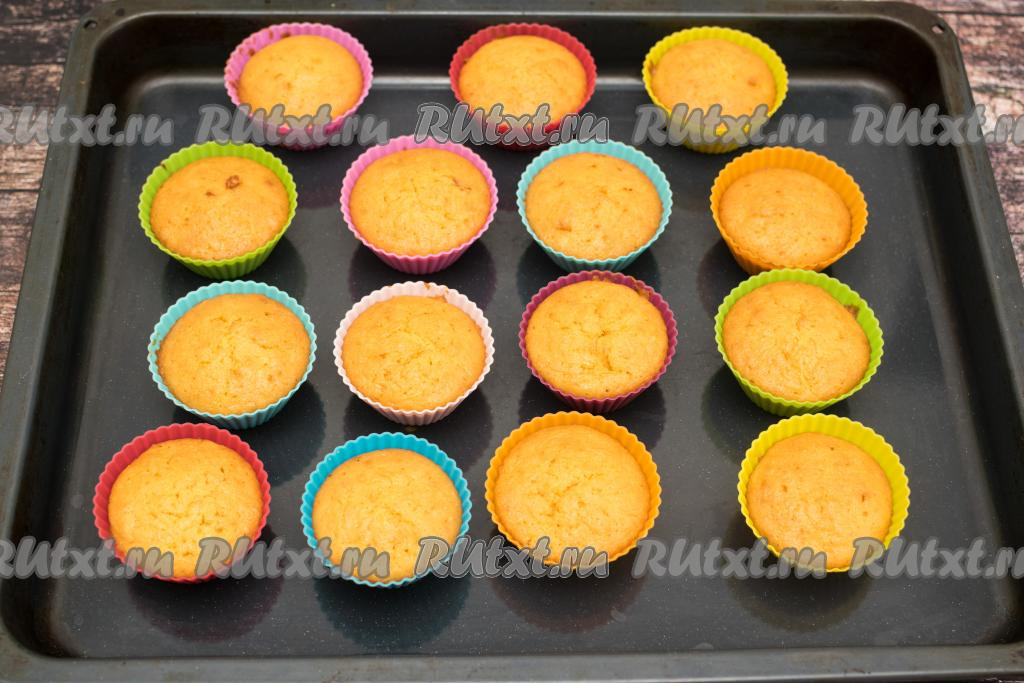 Морковные кексы выпекать в течение 30-35 минут (до готовности). Кексы понимаются ровно, без "вулканчиков".