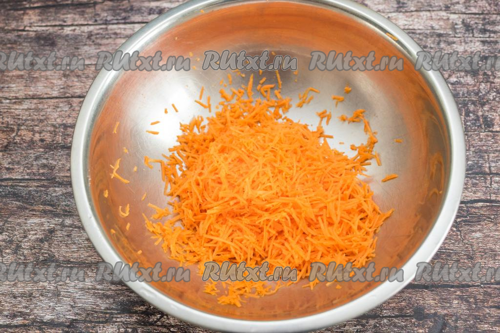Морковку очистить, промыть водой, натереть на мелкой тёрке. Всего потребуется 150 грамм натёртой морковки.