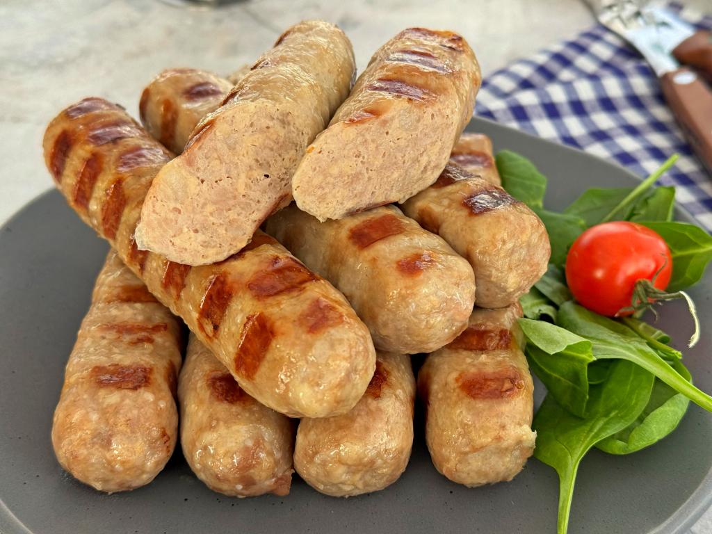 Готовые купаты переложить с электрического гриля на тарелку и сразу подать к столу.