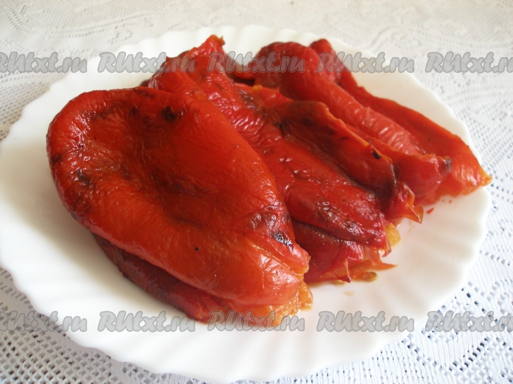 Перец вымыть, вытереть насухо и запечь в духовке при 200 градусах 20 минут. В процессе запекания перцы переворачивать, чтобы они запеклись со всех сторон.