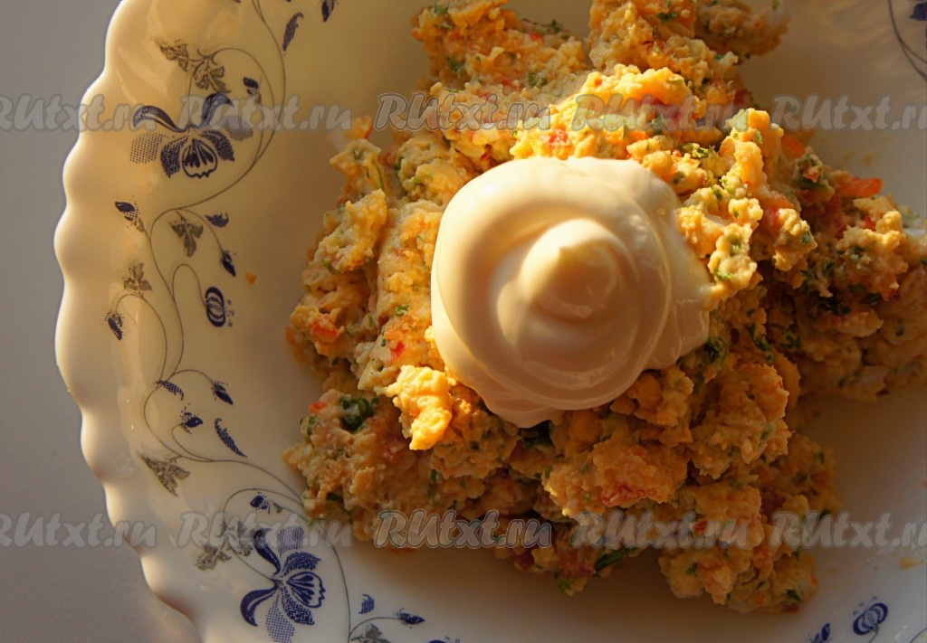 Добавить майонез (лучше использовать домашний майонез), при необходимости соль и перемешать.