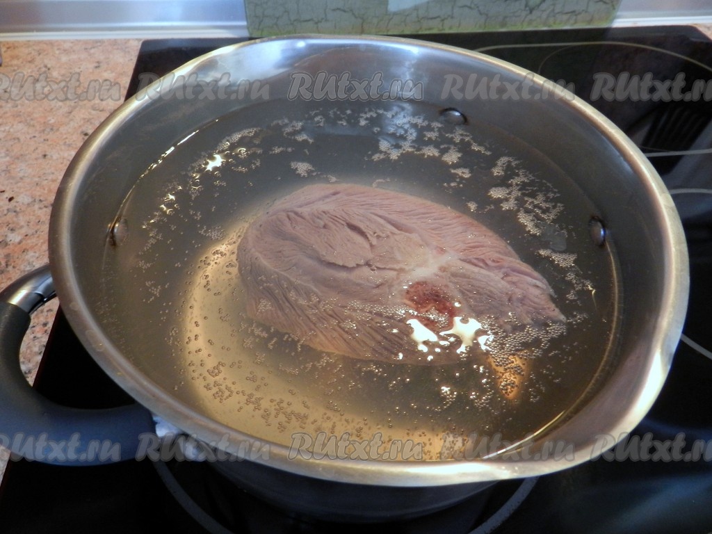 Положить в кастрюлю, залить двумя литрами холодной воды и поставить варить. Когда вода закипит, снять пену, уменьшить огонь и варить бульон 1 час.