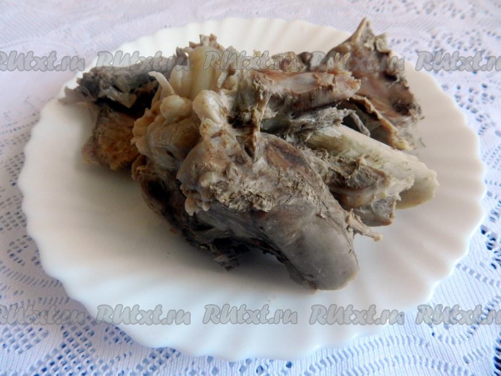 Когда индейка сварится, вынуть мясо из бульона, отделить от костей и разделать на небольшие кусочки.