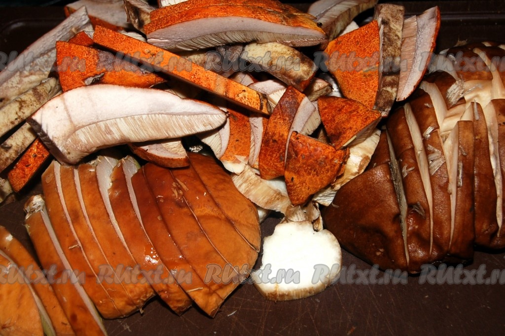 Свежие грибы перебрать и почистить. У меня были белые и красные грибы.