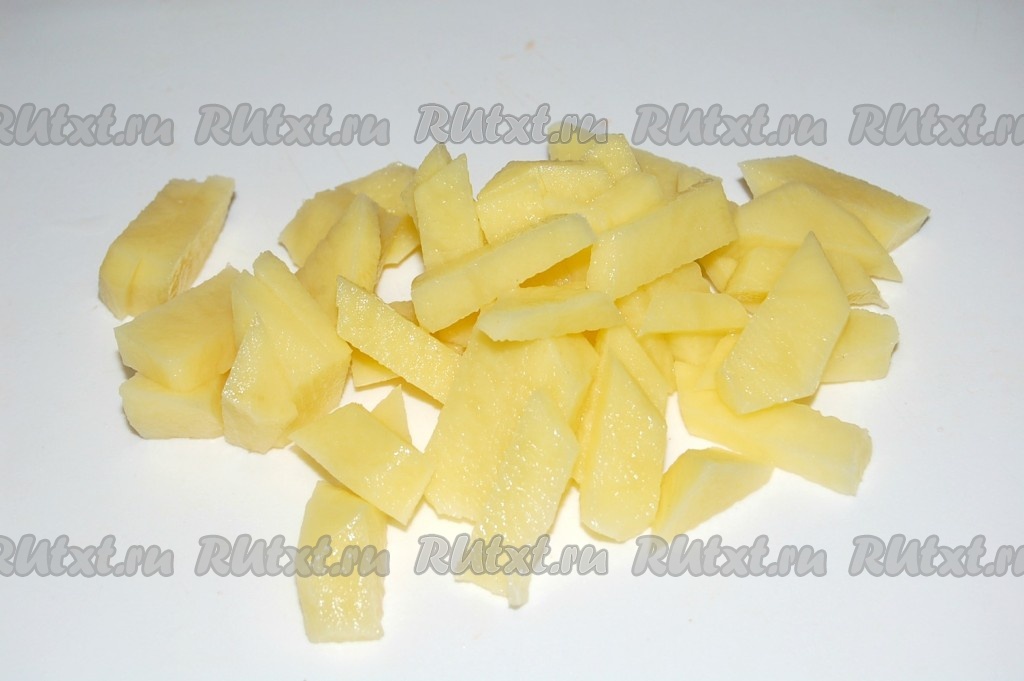 Картофель также нарезать небольшими кусочками.