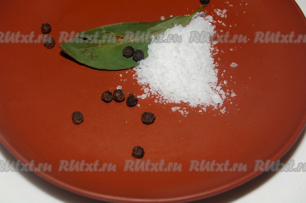 Приготовить лавровый лист, соль, черный перец горошком.