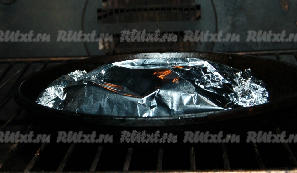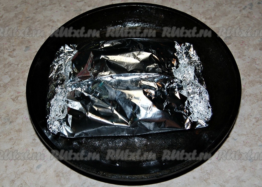 Закрыть фольгу герметично со всех сторон и разместить ее на сковороде.
