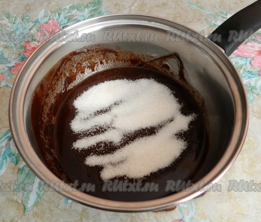 В шоколадную массу всыпать сахар, тщательно перемешать и оставить остывать.