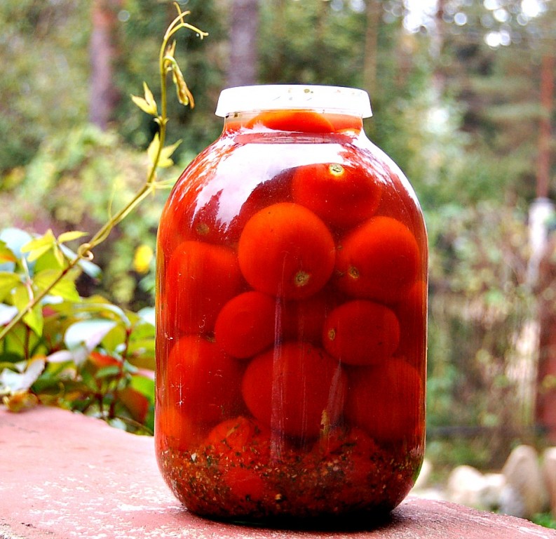 Теперь можно выносить банку на холод. Через 1 месяц помидоры, законсервированные холодным способом, будут готовы к употреблению.