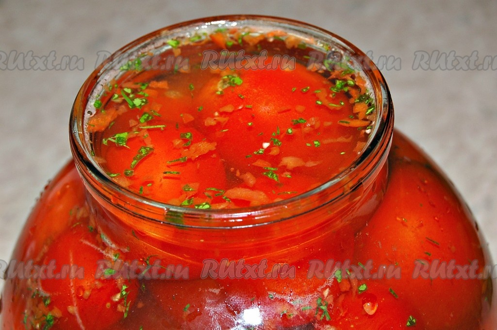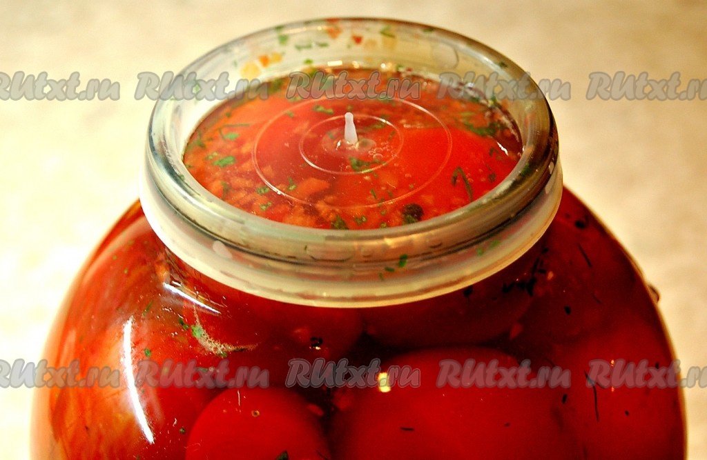 Залить помидоры остуженным маринадом.