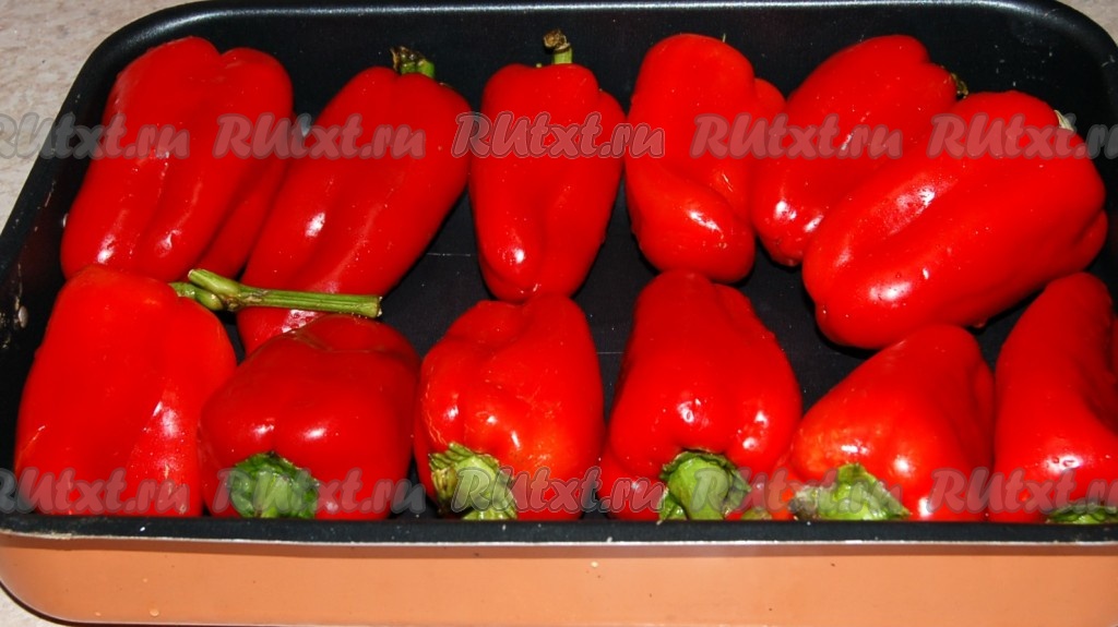 Противень с  перцами отправить в духовку при температуре 180 градусов на 30-40 минут.