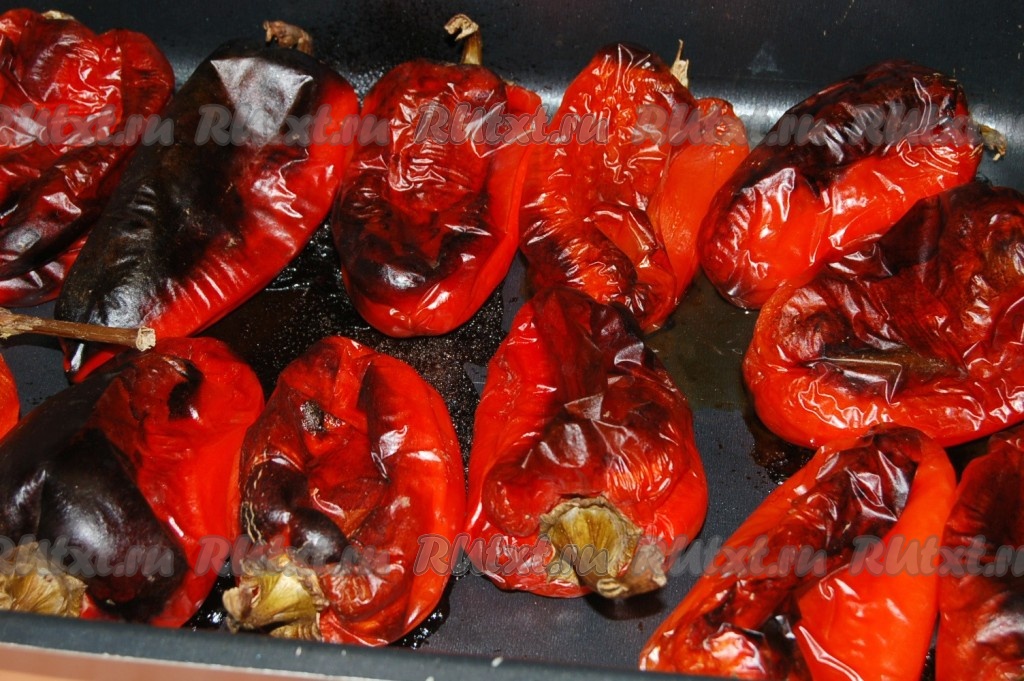 Девочки, ловите подсказку! Перец перед запеканием почистите от хвостика и семечек. После запекания снимите шкурку и уложите в контейнера. И еще помните, что без хвостиков и семечек перец печется быстрее. Минут 15-18. При температуре 180-200 градусов.